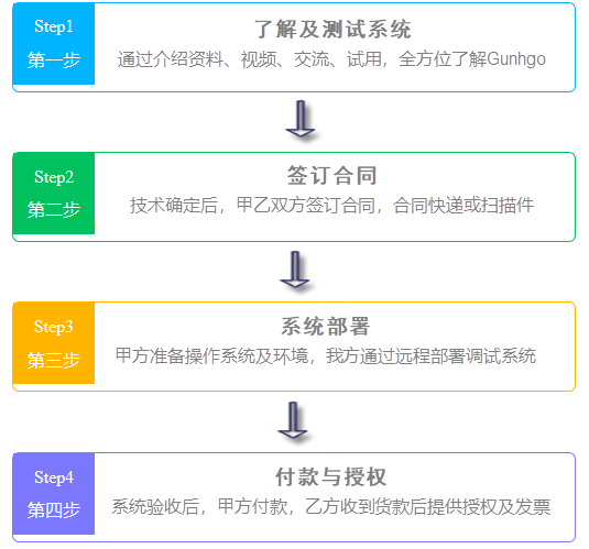 4、部署后,有1個月的測試周期。測試后覺得功能服務你方需求,可以將你公司(單位名稱+聯系人+機器碼)發郵件給我們,我們收到郵件后,會提供授權文件給你方。